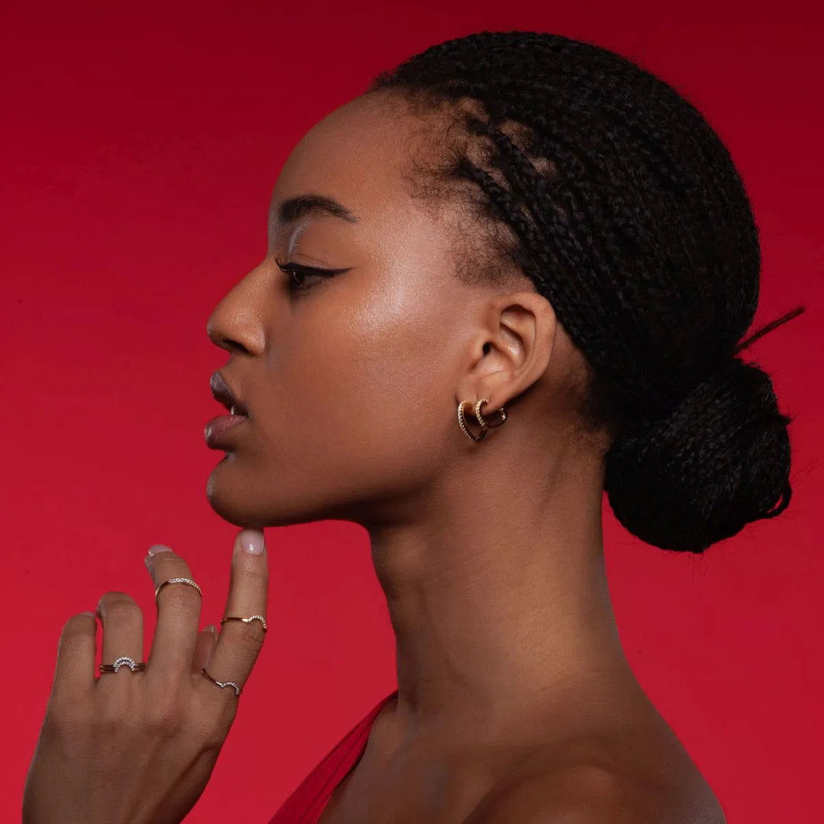 Elegancia que se percibe en cada detalle, ear studs chapados en oro con topacio blanco iluminan cualquier ocasión.