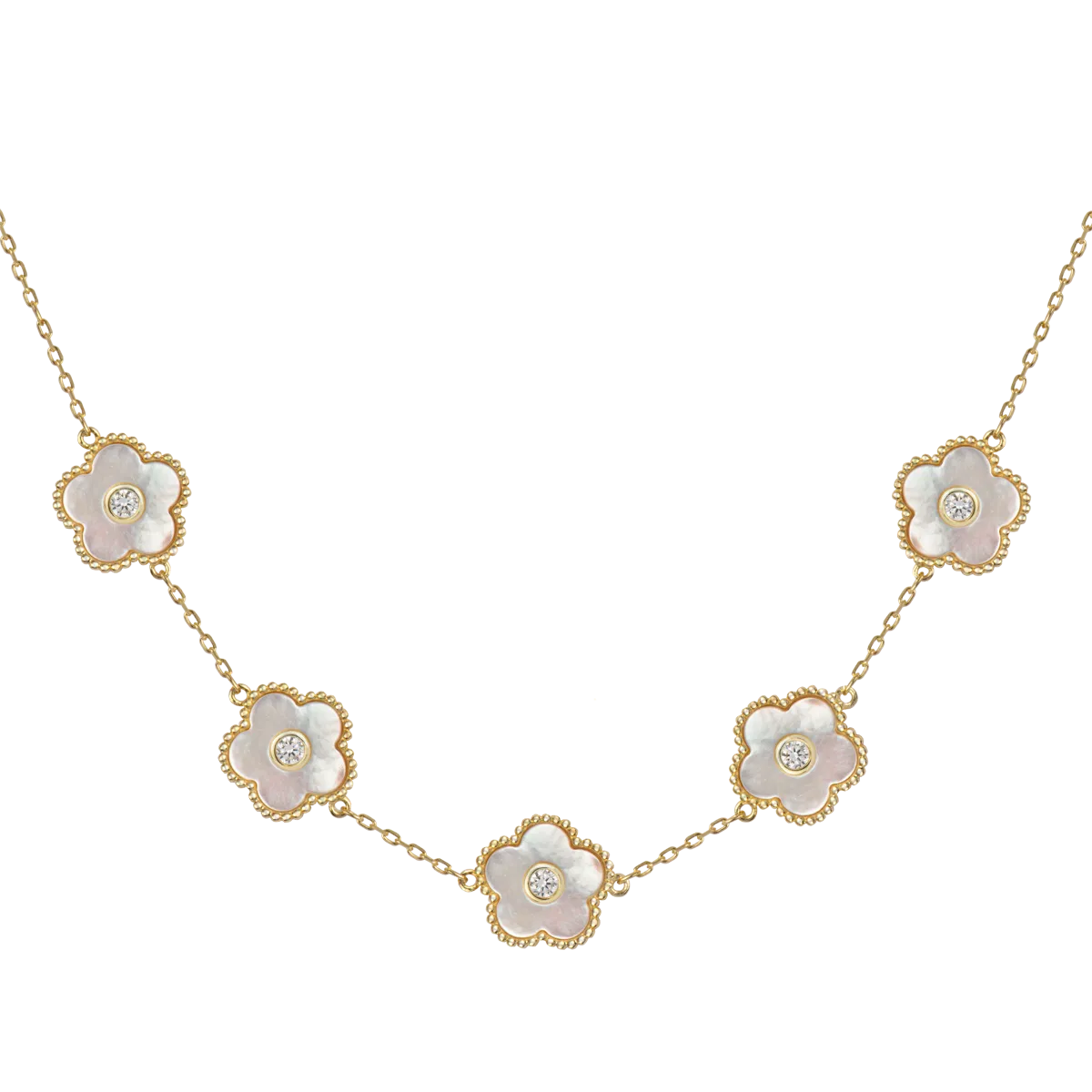 Topacio y nácar se fusionan con la calidez del oro para crear una pulsera Flower sofisticada y distintiva.
